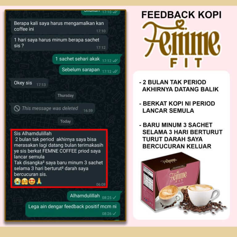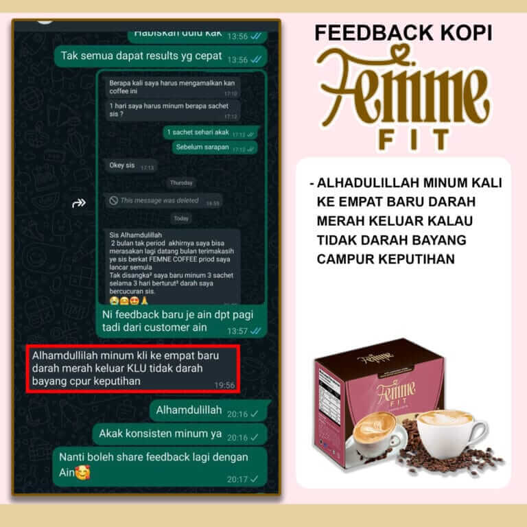 Boleh sangat. Femne Kopi bantu rangsang hormon wanita secara semula jadi. Ramai pelanggan kami yang period tertangguh 3-6 bulan, kembali datang lepas amal kopi ni secara konsisten.